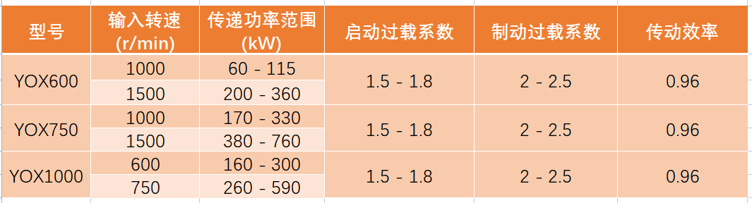 為確保傳動系統匹配合理、運行高效,為挖掘機選擇合適的限矩型液力耦合器需基于具體工況和核心參數。以下是針對挖掘機常見應用,對YOX600、YOX750、YOX1000三個關鍵型號的參數分析與選型參考。